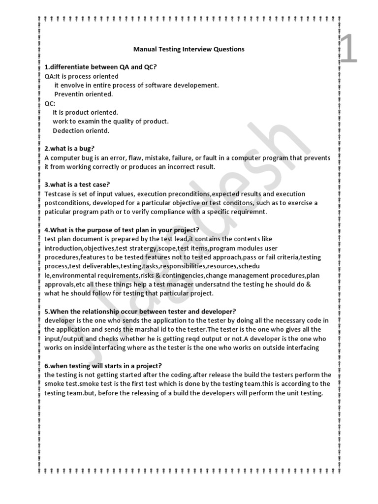 Qa Tester Interview Questions Manual Testing Tutorial Manual