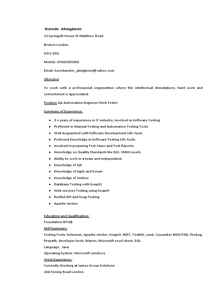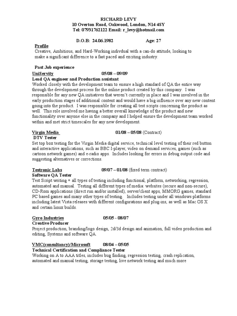 11 Quality Assurance And Testing Cv Examples In London Livecareer